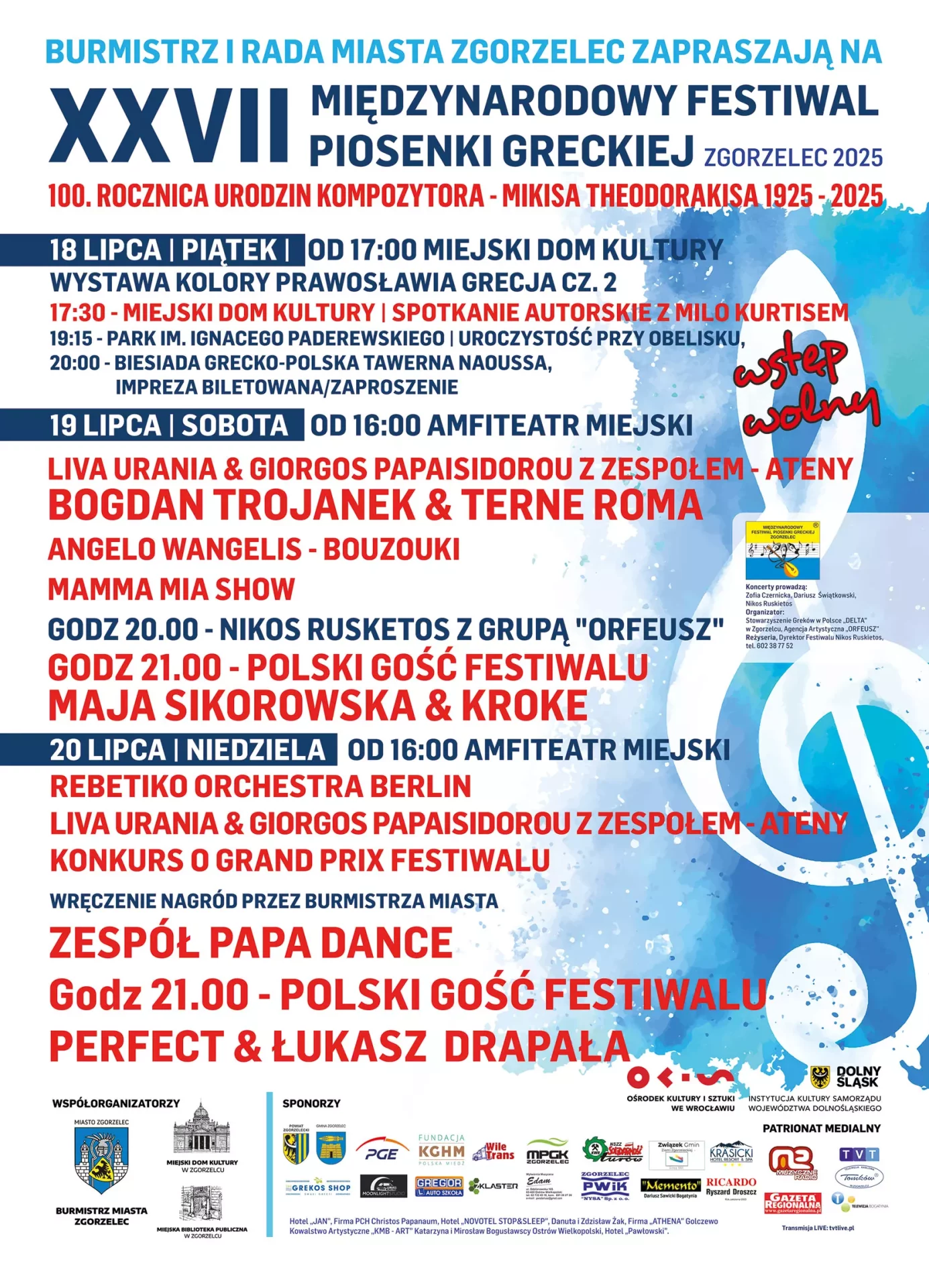 W dniach 18-20 lipca 2025r. odbędzie się XXVII edycja Festiwalu Piosenki Greckiej. Tradycyjnie już do Zgorzelca zawitają wszyscy, którzy czują się związani z kulturą grecką.